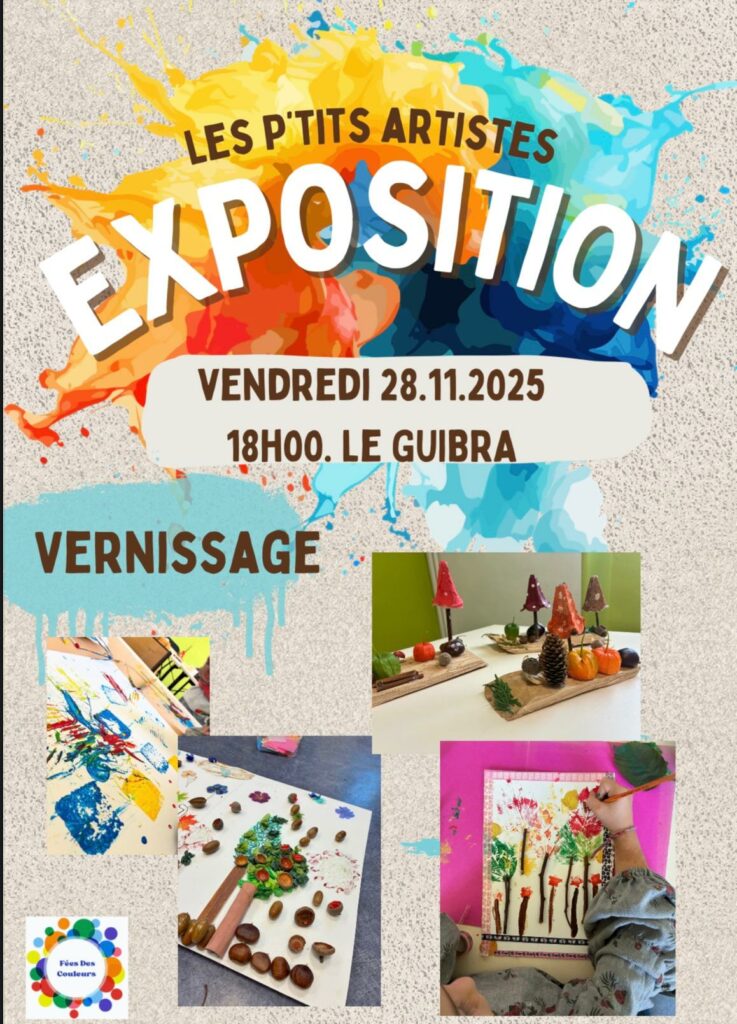 Publié le 26 novembre 202526 novembre 2025 par adminVERNISSAGE DE L’EXPOSITION DES P’TITS ARTISTES Vendredi 28 Novembre• 18h