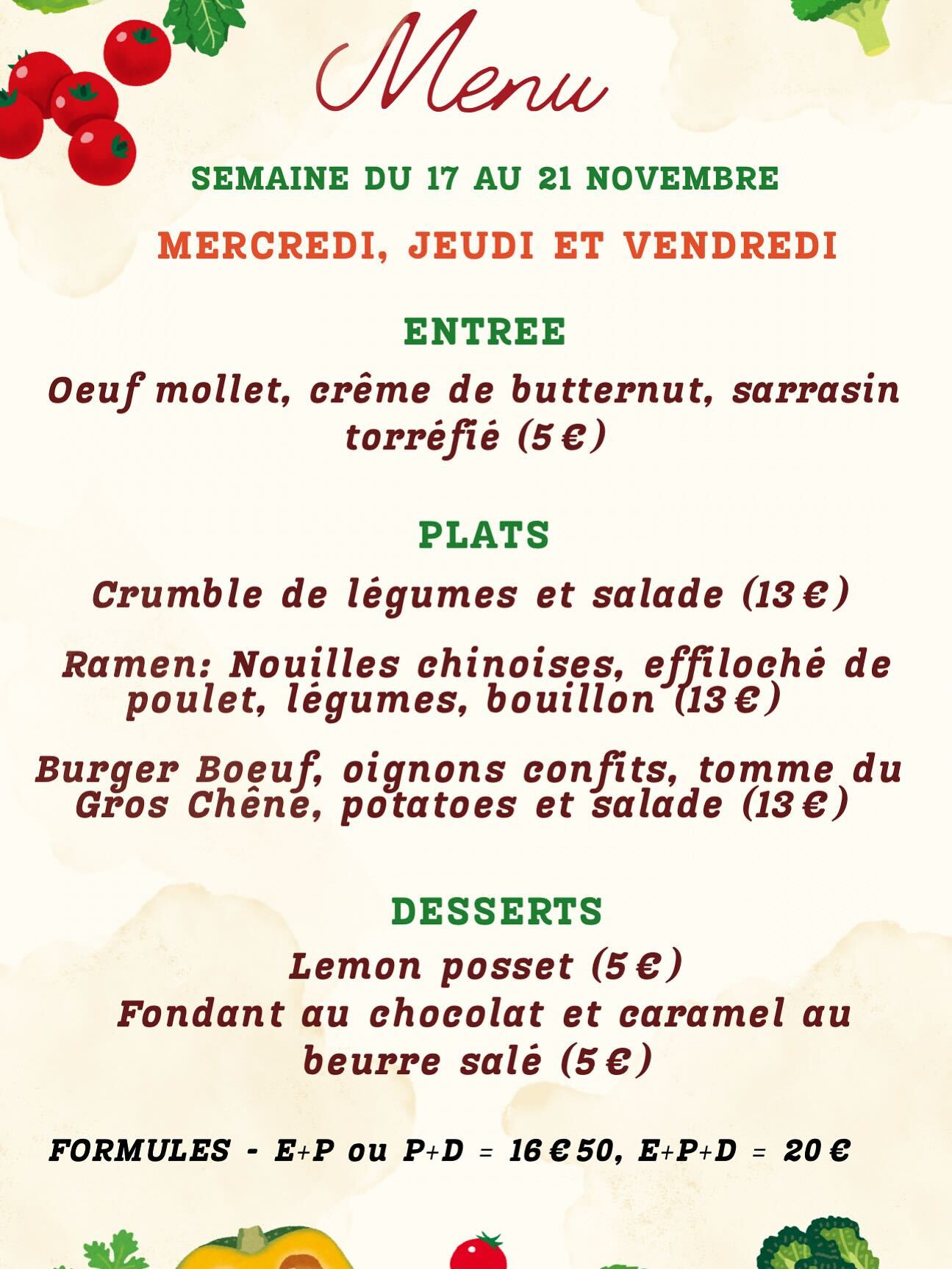 Le resto est ouvert le midi du mardi au vendredi de 12h à 14h