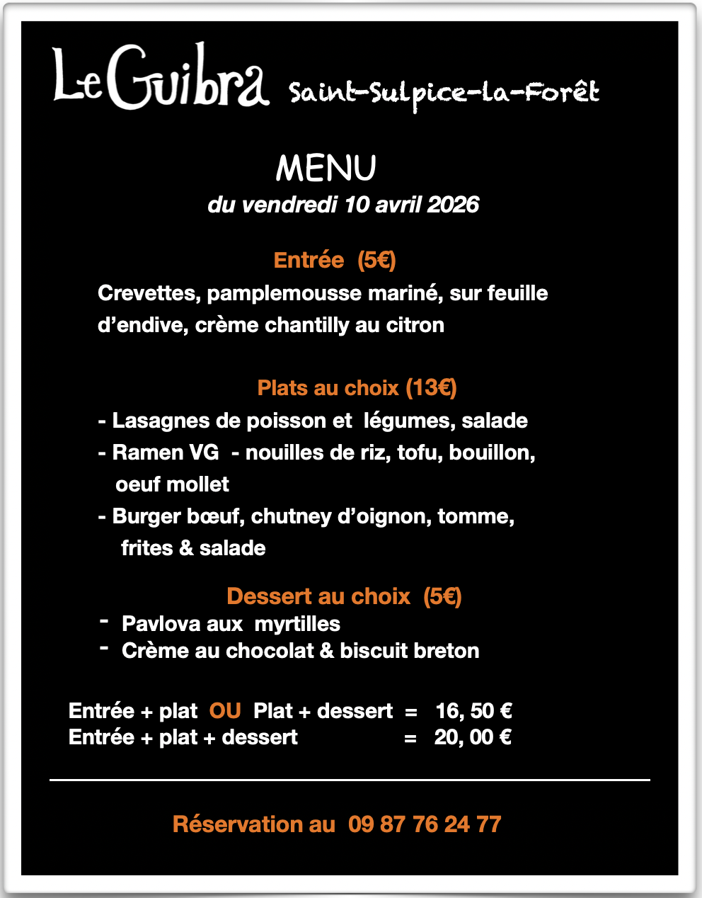 Le Guibra vous propose une cuisine savoureuse qui fait la part belle aux produits de saison, locaux et bio. Ici, tout est « fait maison ». Il y en a pour tous les goûts : carnivores et végétariens, cuisine trad’ ou du monde.